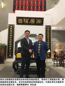 耒陽市政協(xié)委員、耒陽市工商聯(lián)副主席、湖南家居協(xié)會副會長、長沙市耒陽商會常務(wù)副會長、中國藝術(shù)紅木家居專業(yè)委員會副主任、福居閣董事長 劉紅成 親切合影