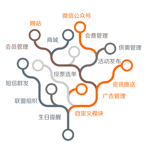 商企互聯(lián)提供超強(qiáng)功能集合管理平臺,全覆蓋商協(xié)會日常管理所需,同一管理后臺同步管理網(wǎng)站、公眾號、商城、活動、供需、投票、短信等多元功能模塊,操作更簡易、便捷